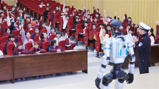“小瑞”身高约132厘米,体重35公斤,虽然是个“钢铁之躯”,但做起各种肢体动作都有模有样。课堂上,它成了最受欢迎的“明星讲师”。在生动有趣的问答互动环节,它用活泼的语言和俏皮的动作,将交通安全知识传递给每一位同学。面对“小瑞”提出的交通法规问题,孩子们争先恐后地举手回答,现场气氛热烈。市公安局交管大队民警蔡文毅课后介绍道,这样新颖的互动形式,更加吸引孩子们的兴趣和专注力,让交通安全知识课变成孩子们乐于参与的趣味体验,效果非常好。