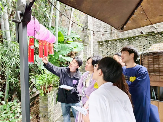 当日,砚云窑院落内纸笺飘摇,盏盏手作花灯下悬挂着各式谜题。这些谜面或引经据典,或吟咏诗词,更融入了本土风物。青年才俊们三五成群热烈探讨,现场欢声笑语不断。猜中谜底者不仅收获积分礼品,更在互动中结识了志同道合的新朋友。