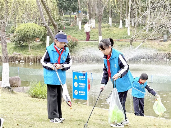 除了巡河,明镜公园活动现场,水利局党团员志愿者通过展板讲解、发放《河长制工作手册》《节水知识读本》等资料,向市民普及水资源保护、水土保持及涉水法律法规知识。青少年志愿者与家长组成“亲子护水队”,沿河清理烟蒂、塑料瓶等垃圾,并向周边居民宣传爱河护水理念。“和孩子一起动手清理河道,能增强他们的环保意识,也让他们明白保护水资源需要从身边小事做起。”参与活动的家长林国选说。