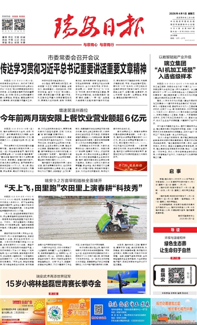 《瑞安日报》版面安排如下:4月6日(星期一)休刊,4月7日(星期二)起恢复正常出报。