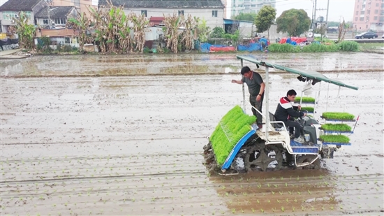 源田家庭农场负责人项贤治介绍,农场于3月29日启动插秧作业,目前已插秧80余亩,预计当日可完成140亩。今年农场共种植双季稻3500余亩,总承包面积达4500余亩。得益于入春以来充足的降雨与适宜的气温,3月初布种的2万余公斤“甬籼15”优质稻种,经20余天育秧,首批秧苗长势良好,已全面进入插秧阶段。“今年插秧比往年提早了十一二天,早稻育秧没有遇到烂秧情况。”项贤治说,早稻抢早播种,可为晚稻争取生长时间,有效规避后期冷空气带来的减产风险。