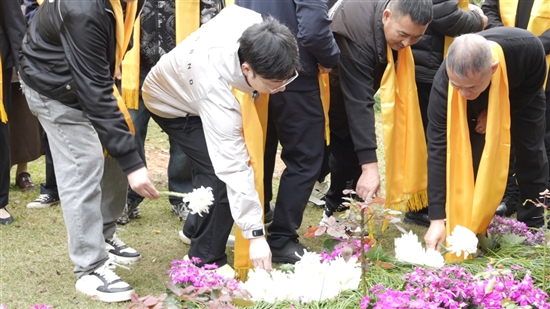 本报讯(记者 杨微微 杨洋)又是一年清明时,霏霏细雨,点点思愁。3月30日,在市民政局、市文明办主办的2026年瑞安市“平安清明,文明祭祀”暨第七届集体节地生态葬活动仪式上,众人手持鲜花、黄丝带跟随工作人员,缓缓走向花葬纪念碑,默哀,三鞠躬,献花……当日3位逝者的骨灰一同被葬于草坪下,没有墓室、没有墓碑,只有花坛旁伫立的纪念墙上刻着逝者的名字,是他们安眠于此的证明。