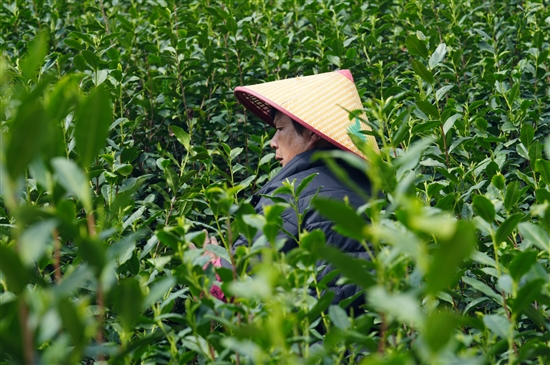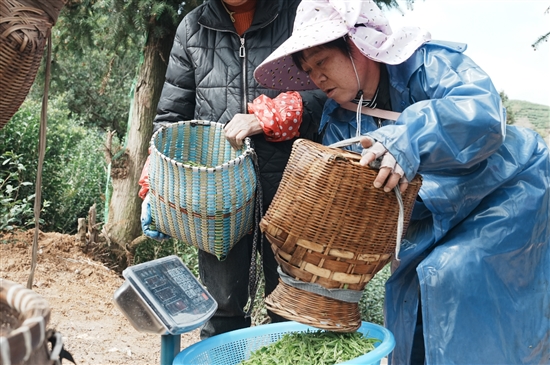 据介绍,茶寮村的茶叶种植历史悠久,这里的茶农积累了丰富的种植经验,生产的“清明早”茶,芽叶肥壮、色泽绿润、香气鲜雅,深受市场青睐。“今年春茶采摘从2月底就开始了,现在正是高峰期,每天都有上百名采茶工上山采茶。”李士相说。