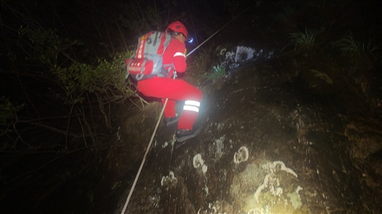 19时许,队员们通过电话与被困驴友反复沟通,仔细研判其大致位置、身体状态及周边环境,快速制定出救援方案。连日降雨,暴涨的河流阻断了前行之路,队员们只能踩着湿滑的乱石,蹚着湍急的溪水艰难跋涉,衣物和鞋子很快被雨水和溪水浸透。行至一处瀑布时,救援人员被峭壁和湍急的水流阻挡。“绕行至少需要多花1个小时,且当时已开始下雨,被困人员可能撑不住。”民安公益救援队陶山中队队长金崇平表示,这是他救援生涯中最惊险的救援之一。为争取救援时间,金崇平与另一名经验丰富的队员主动请缨,徒手攀爬陡峭崖壁,成功登顶后迅速固定绳索,将其余队员一一拉上,为救援开辟出前进通道。