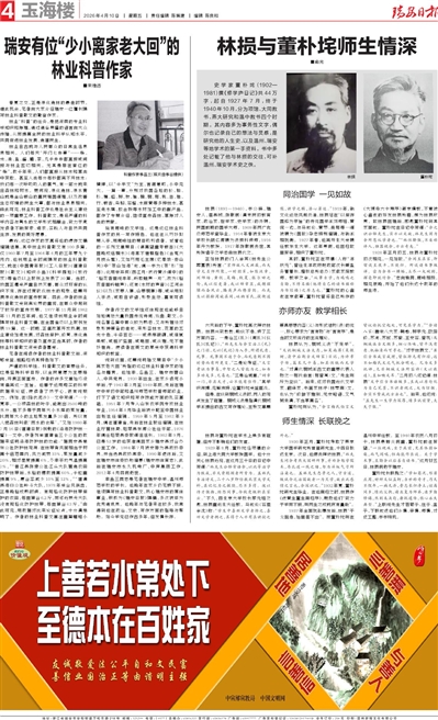 1937年全面抗战爆发后,林损“干戈阻绝,始里居不出”。而董朴垞则在温州中学任教。至1940年农历八月初十,林损患肺炎病重,董朴垞前往探望。“一往视疾,坐于床前,见其体弱如柴,而气间喘,但尚能作长谈。关于学术事,至勖余以后善自读书。”这月廿五日,林损病逝于瑞安。